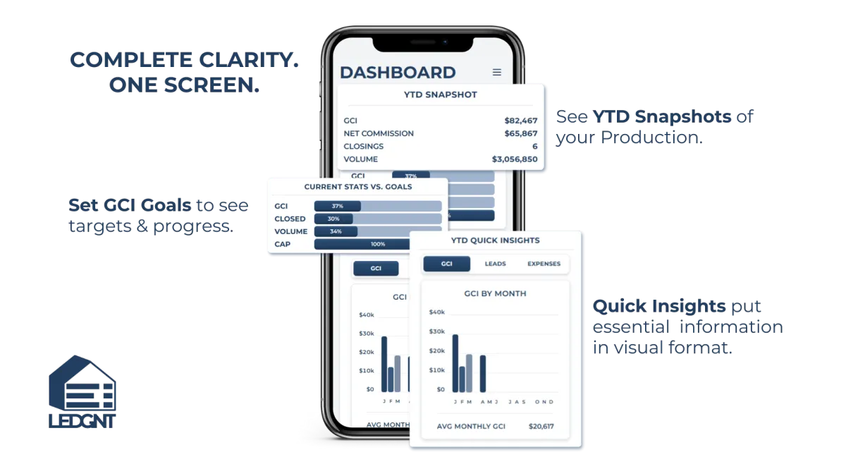 LEDGNT is a financial tracking app built specifically for real estate agents to track closings, expenses, and mileage in one place.